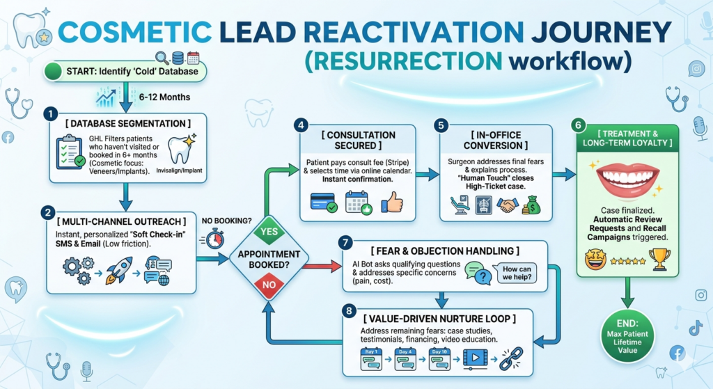 To Reactivate Cold Cosmetic Leads, you need a system that categorizes these prospects by their specific interests (e.g., Veneers vs. Clear Aligners) and re-engages them with a low-friction offer.